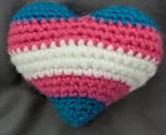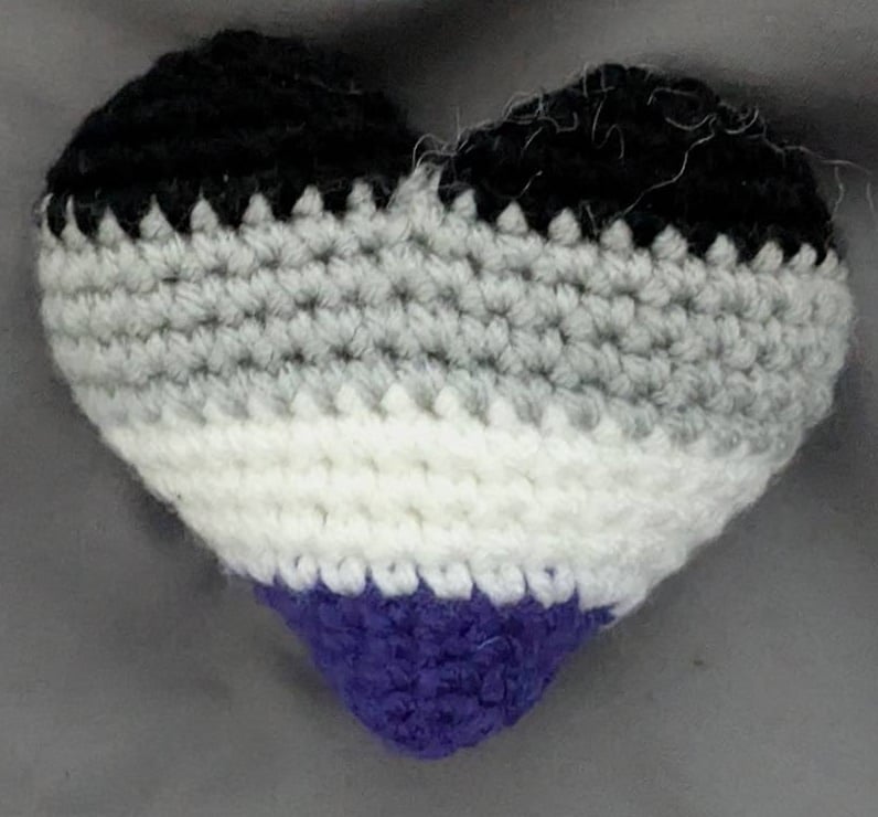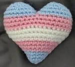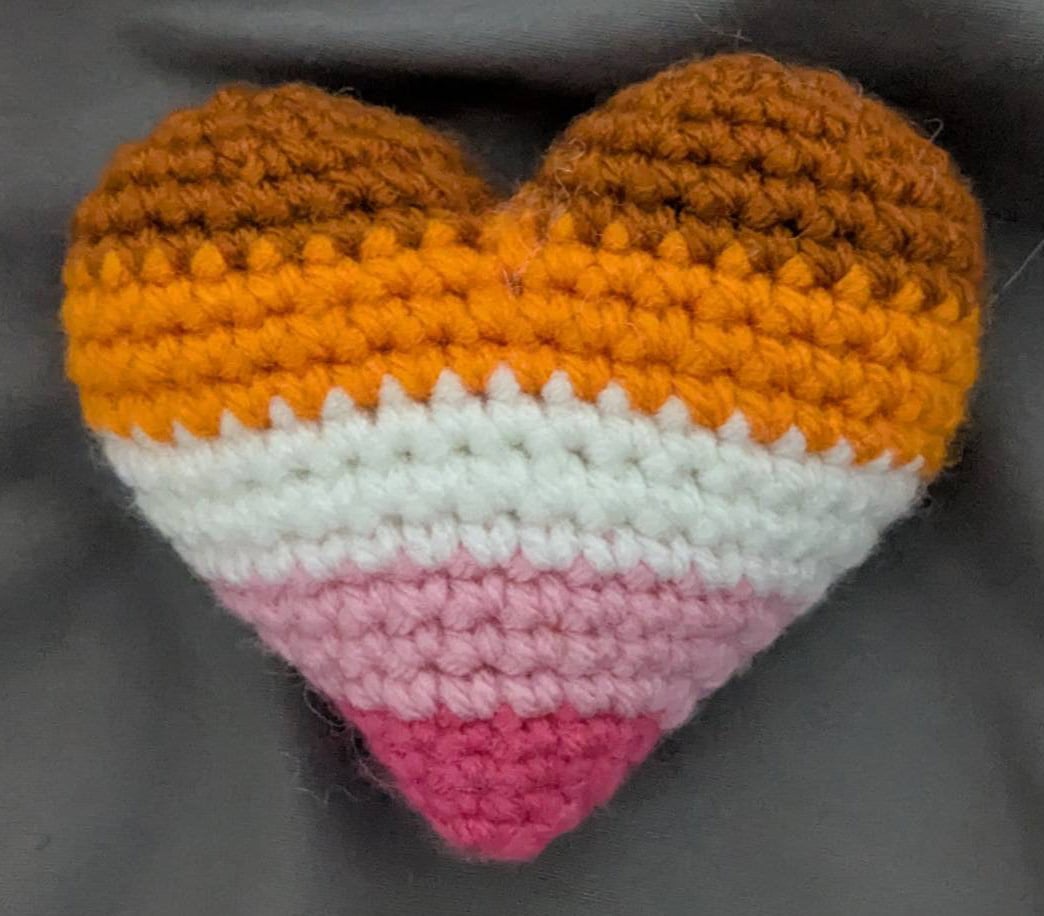 Available in a variety of color patterns, the heart measures about 3 inches across and is made of 100% acrylic yarn and stuffing.